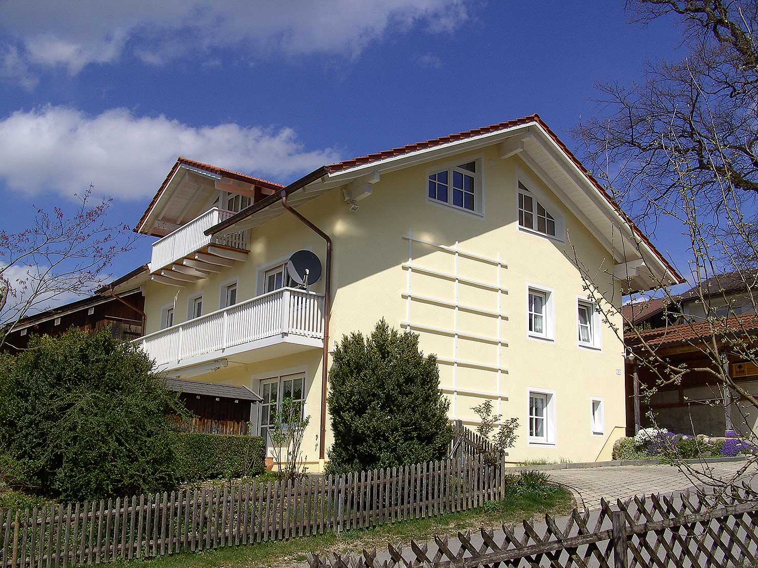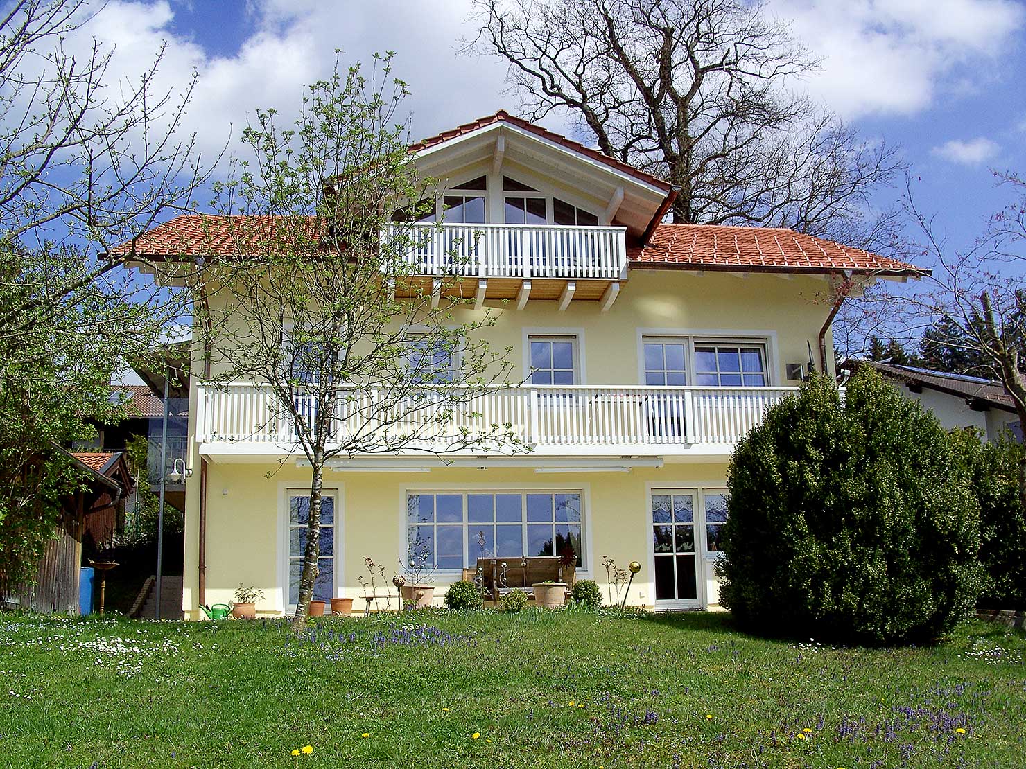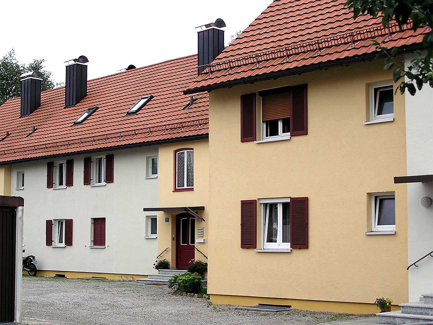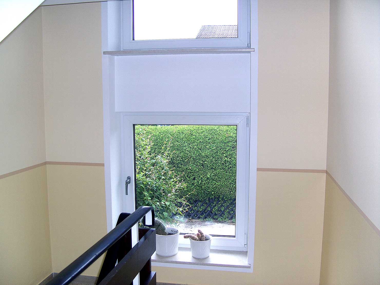 Ab- u. wieder Anbau von Markisen u. Ähnlichem, Gerissener Anstrich, Putzabplatzungen am Kamin, Risse, Säubern der Fassade mit Wasser und Hochdruckreiniger, vollflächige Spachtelung, Kamin mit Gewebearmierung, Kamin neu verputzen, 2-maliger Anstrich mit Mineralfarbe, Renovierungsanstrich bei Holzflächen